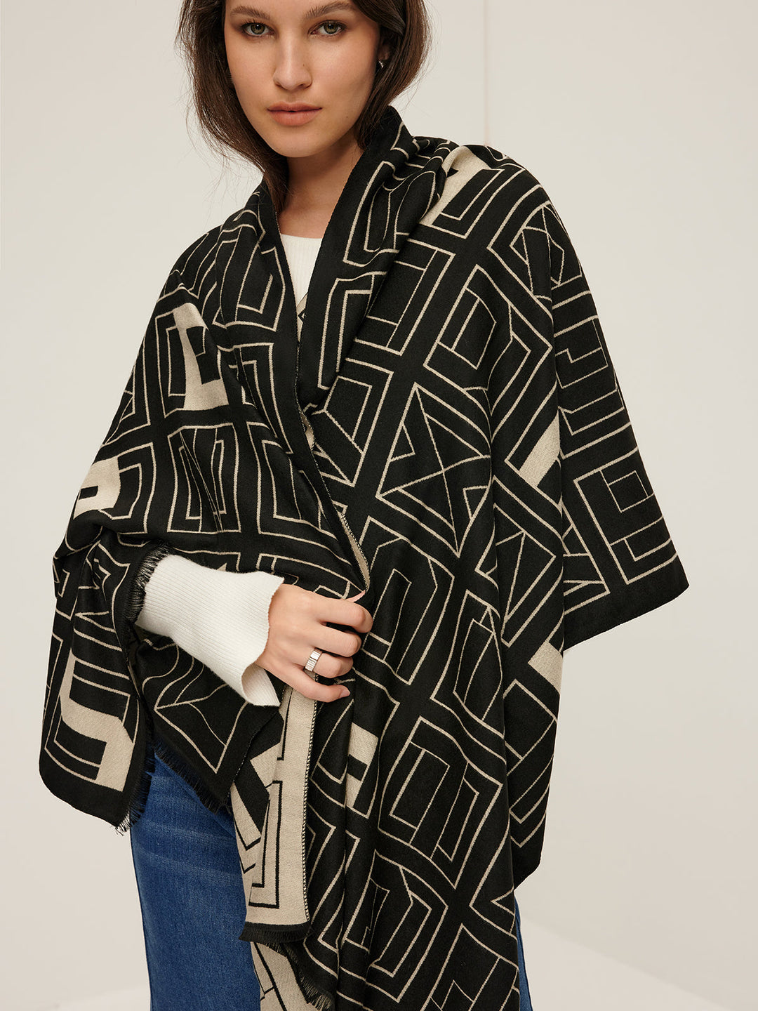 Vintage İki Renkli Harfli Atkı Siyahbeyaz