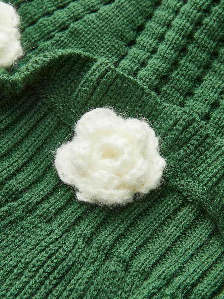 3D Tiğ İşi Çiçekli Peplum Kazak Yelek