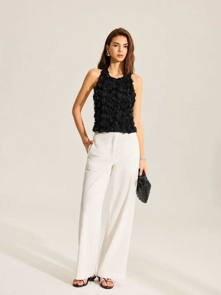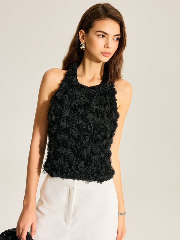 3D Çiçekli Sırtı Açık Fiyonklu Askılı Üst
