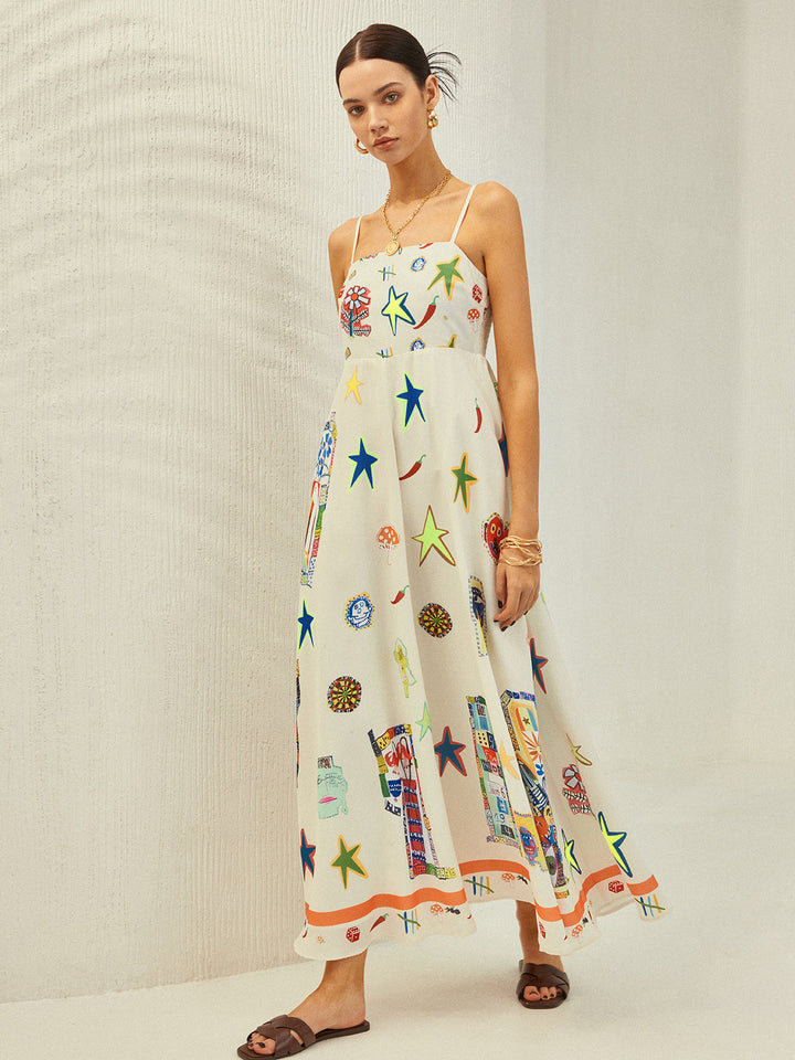 Cepli Ayarlanabilir Askılı Baskılı Elbise