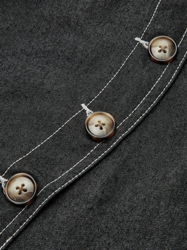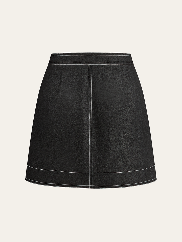 Asimetrik Düğmeli Ön Cepli Mini Etek