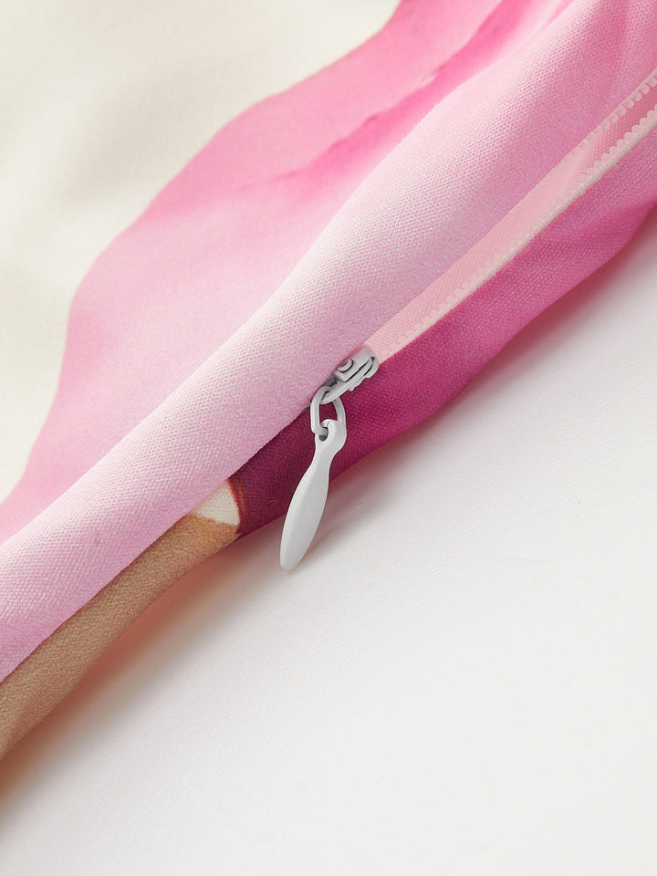 Asimetrik Tek Omuzlu Çiçek Desenli Uzun Elbise