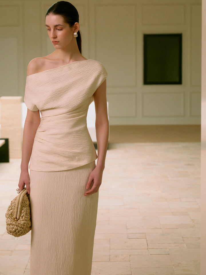 Asimetrik Yaka Tek Omuz Açık Pileli Eşofman