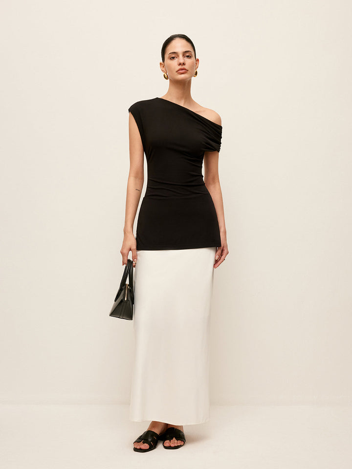 Asimetrik Yakalı Yırtmaçlı Bluz