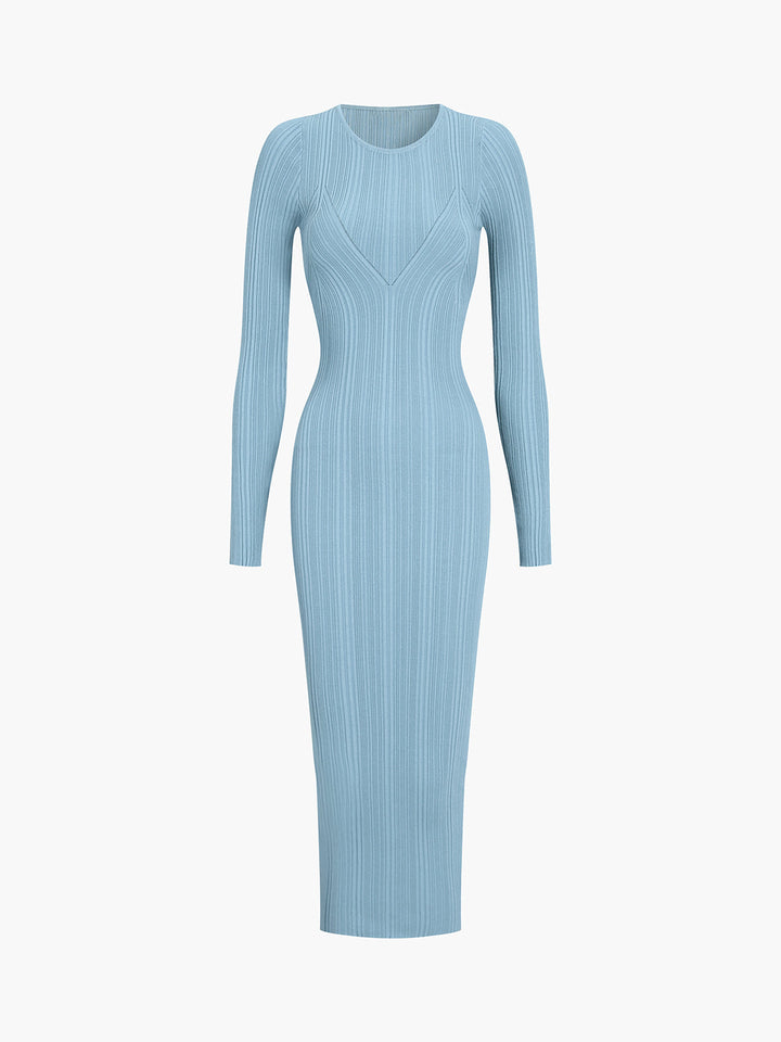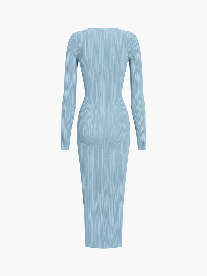 Bebek Mavisi Örgü Uzun Kollu Midi Elbise