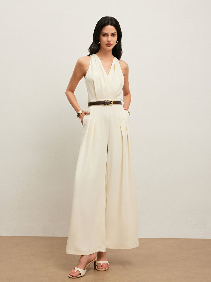 Belinde Kemer Bulunan Arka Düğmeli Askılı Tulum