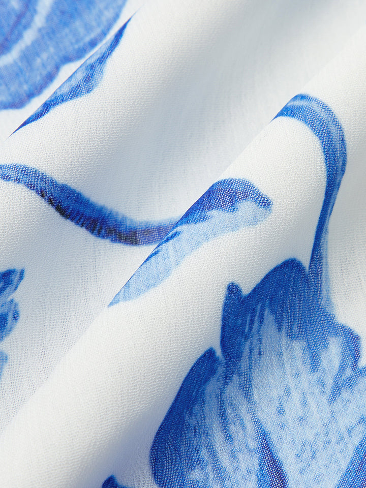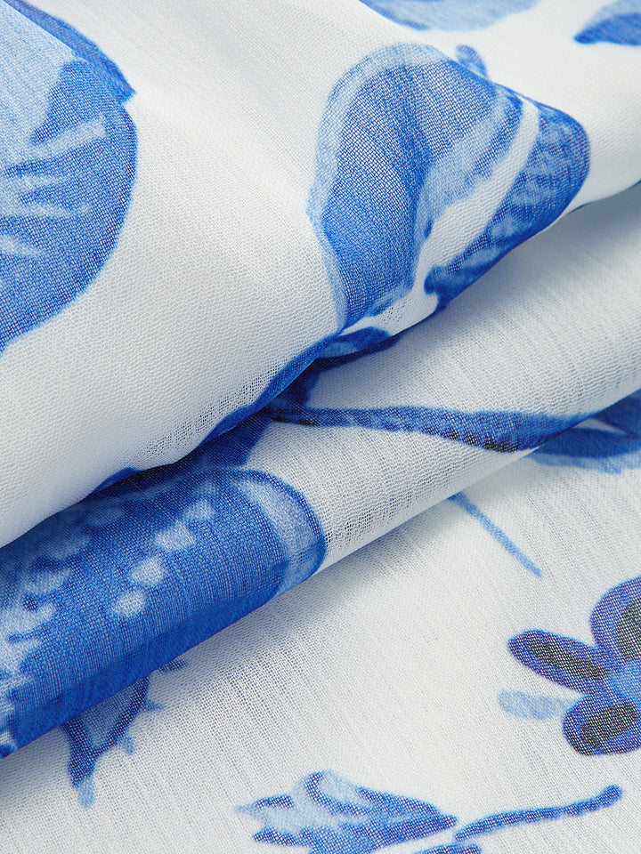 Kemerli Fırfırlı Çiçek Desenli Uzun Elbise