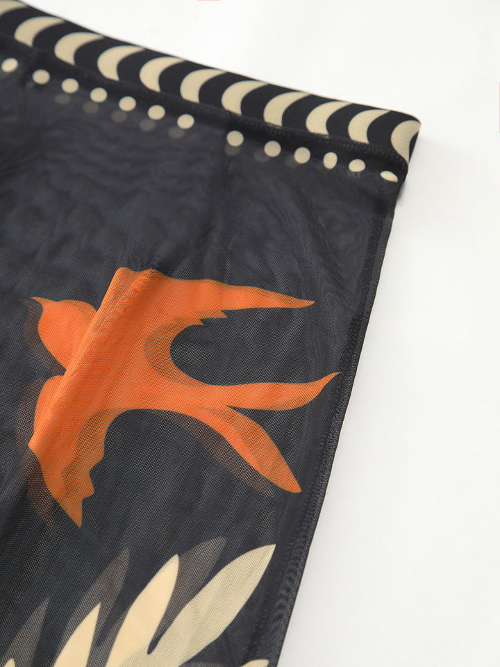 Kuş Desenli Dosya Örtülü Uzun Etek
