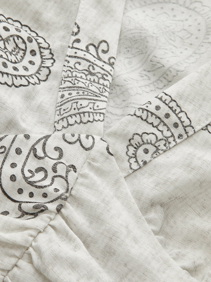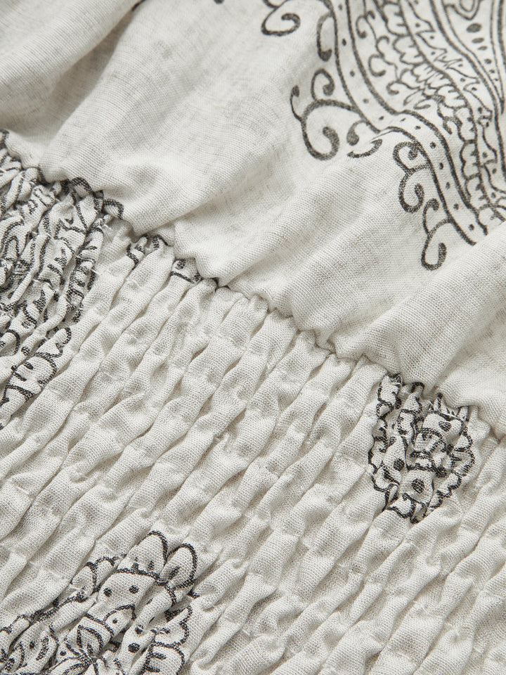 Boho Desenli Büzgülü Kısa Üst