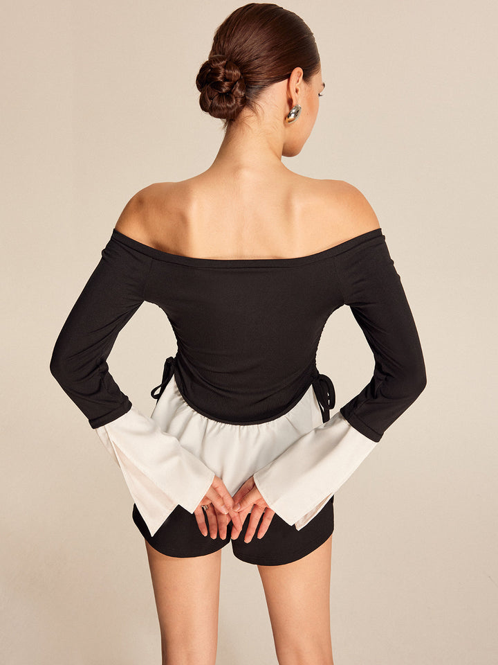 Cesur Kontrast Omuz Açık Düz Yaka Bluz