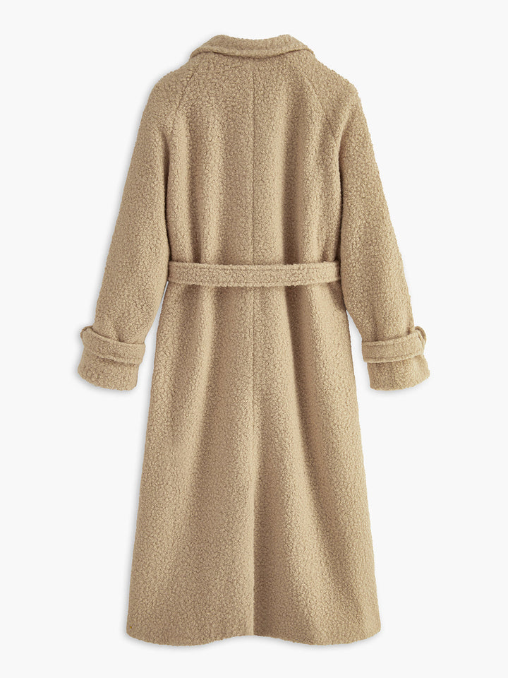Tokalı Kemerli Uzun Sahte Kürk Palto