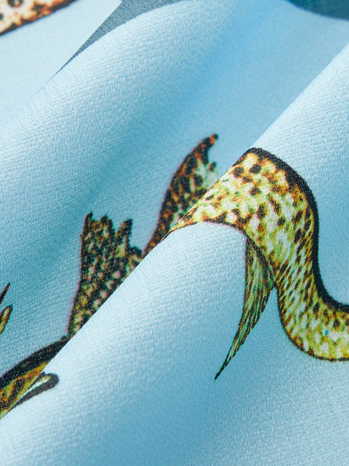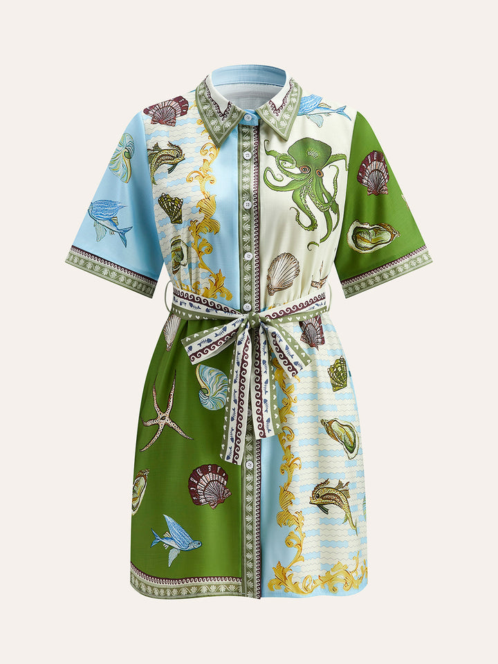Düğmeli Yaka Su Desenli Kemerli Gömlek