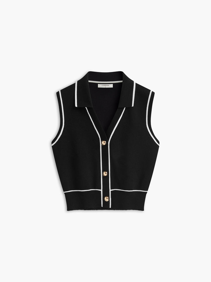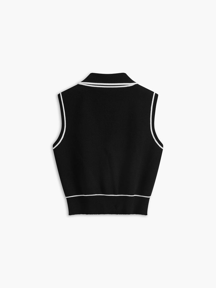 Önü Düğmeli Kontrast Bağlamalı Kolsuz Etek Takımı