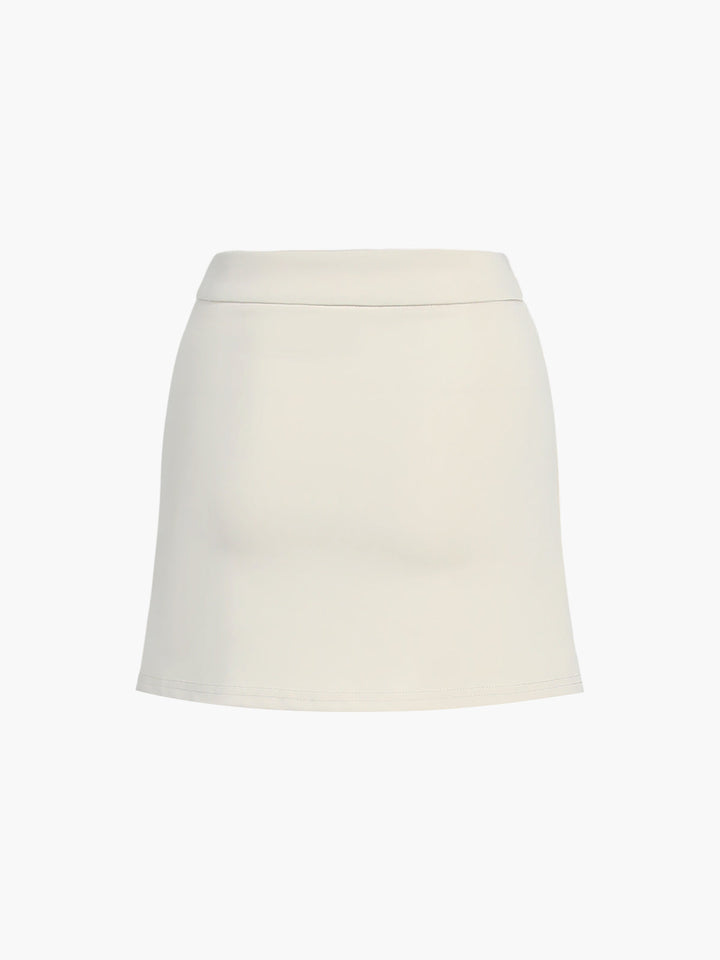 Önü Düğmeli Askılı Yaka Sırtı Açık Yelek Blazer Etek Takımı