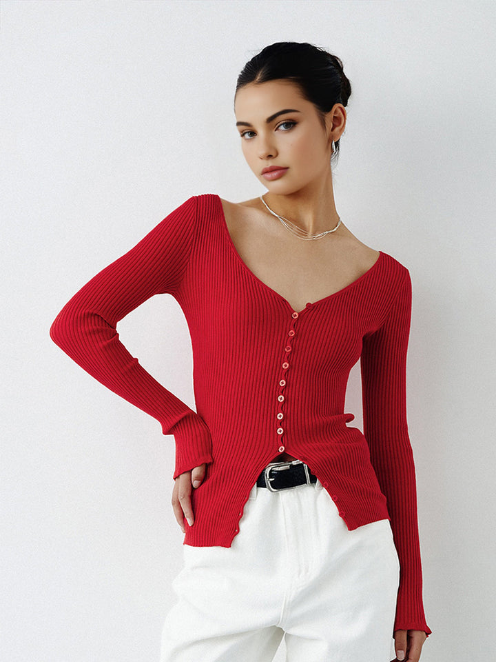 Düğmeli V Yaka Örgü Hırka