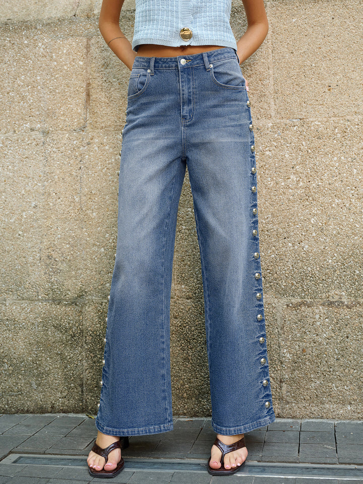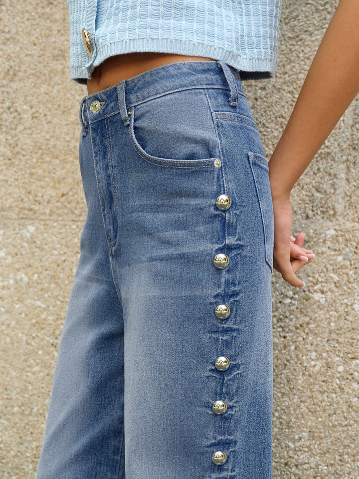 Düğmeli Yan Detaylı Cepli Kot Pantolon