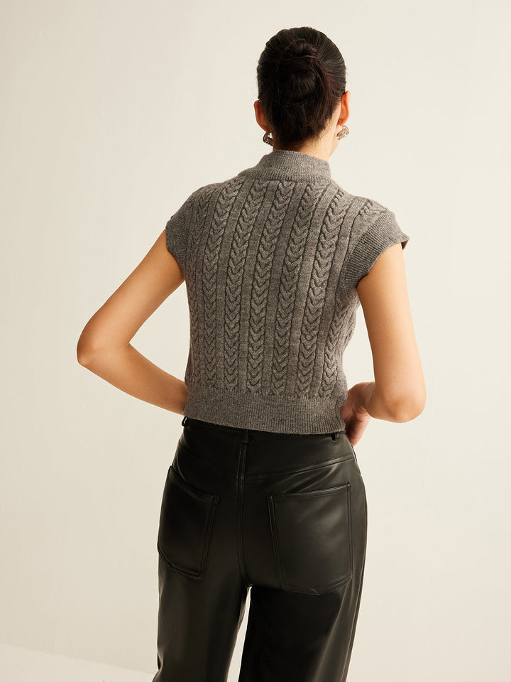 Kablo Örgülü Dik Yaka Kırpılmış Kazak Yelek