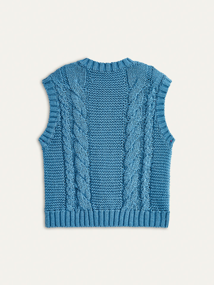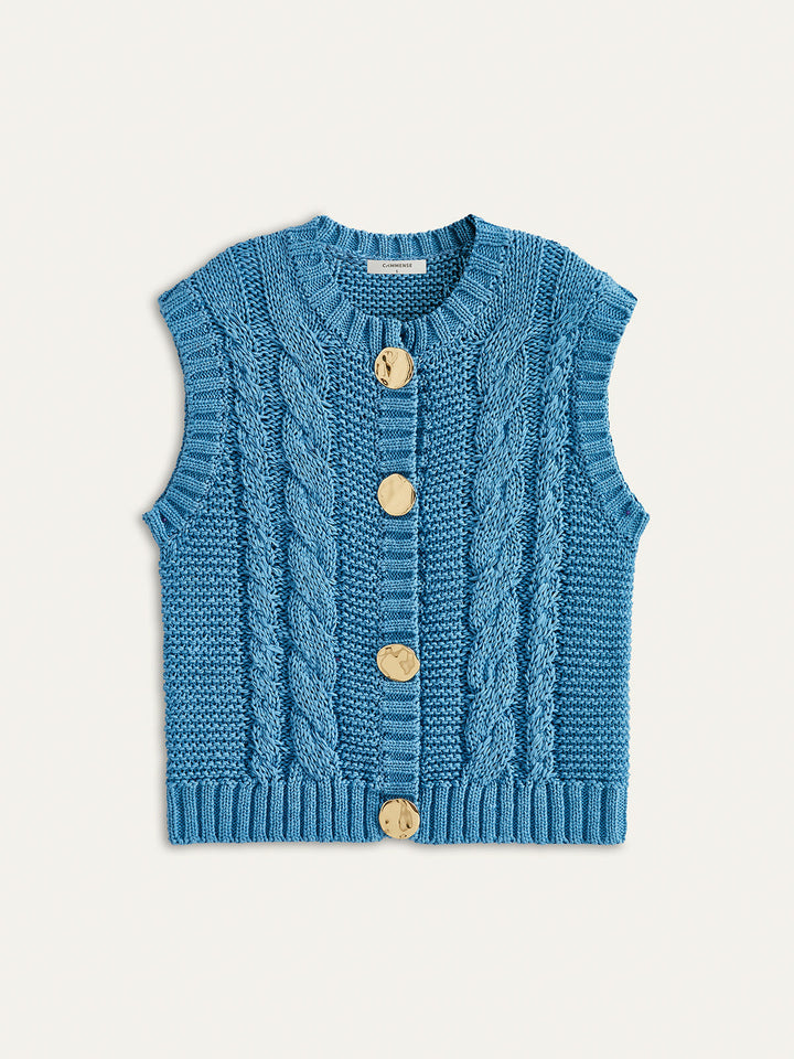Kablo Örgülü Kolsuz Düğmeli Yelek
