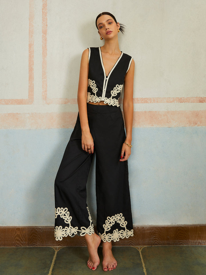 Rahat Nakışlı Kolsuz Fermuarlı Pantolon Takımı