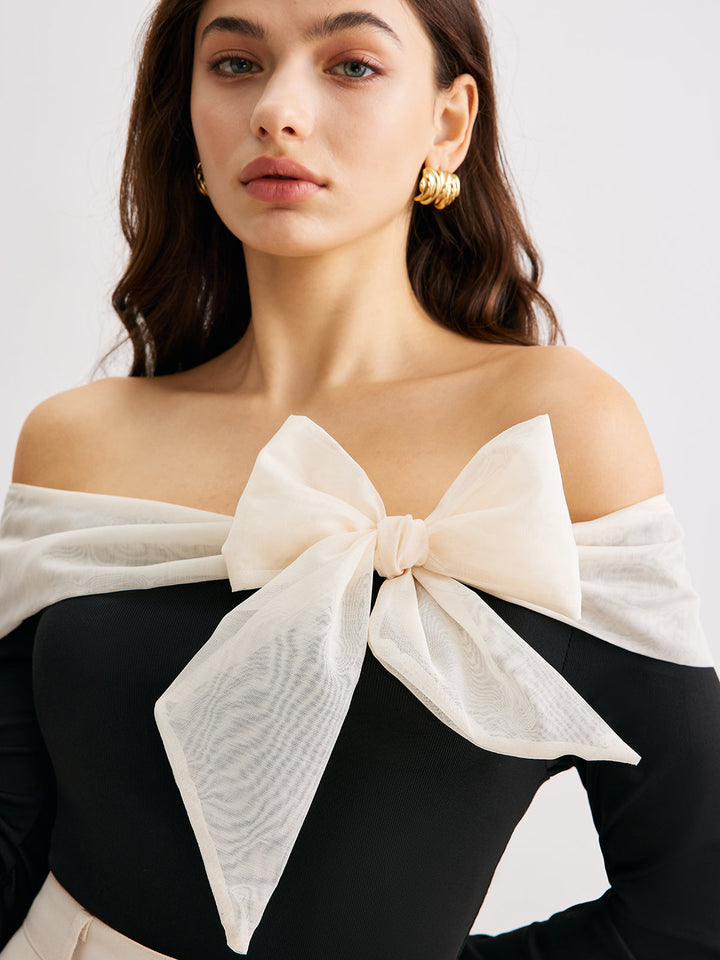 Şifon-Fiyonklu Omuz Açık İnce Bluz