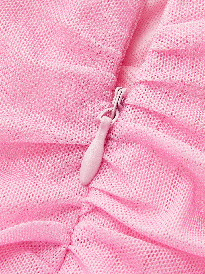Renk Bloklu Degrade Askısız Büzgülü Fileli Bölünmüş Elbise