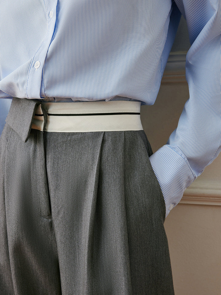 Renk Bloklu Yüksek Belli Pileli Pantolon