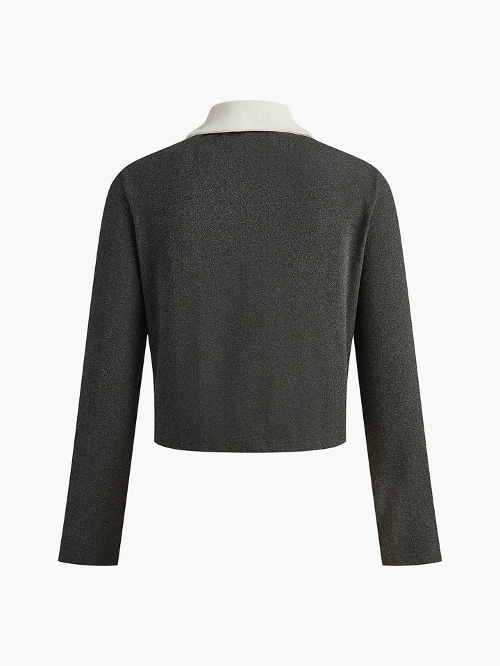 Kontrast Yaka Göğüslü Küçük Ceket