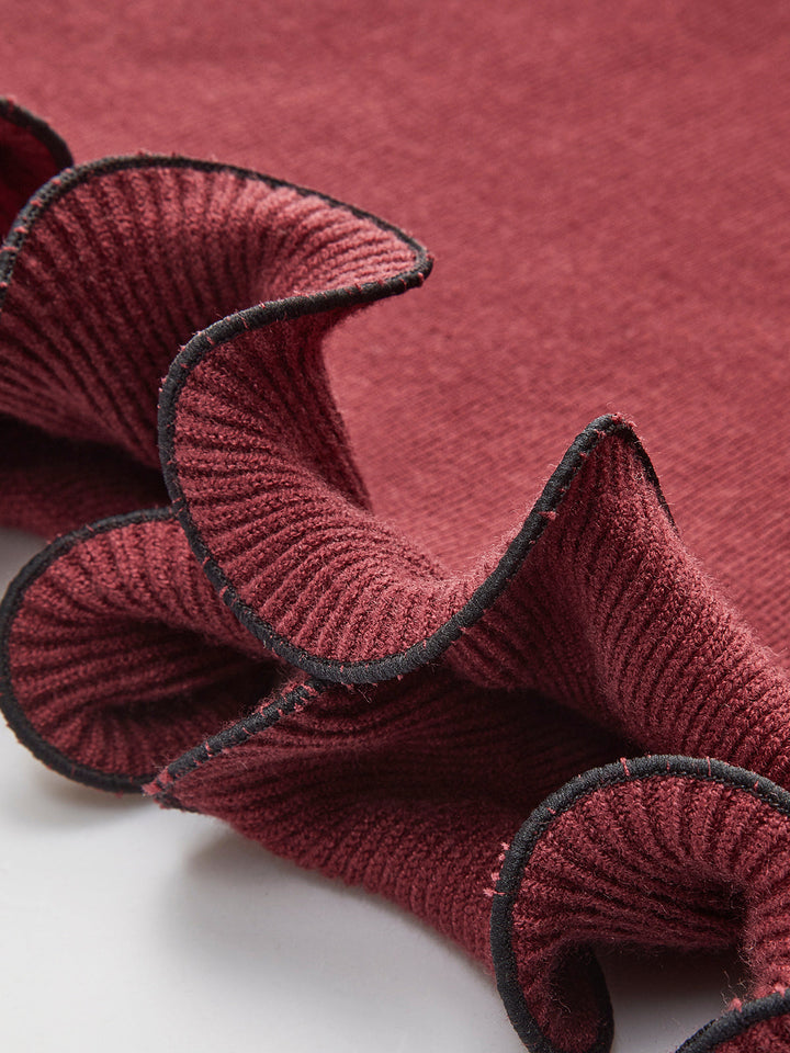 Kontrast Volanlı İnce Elbise