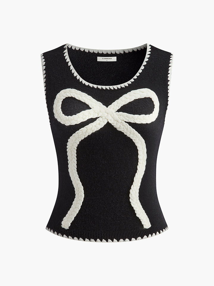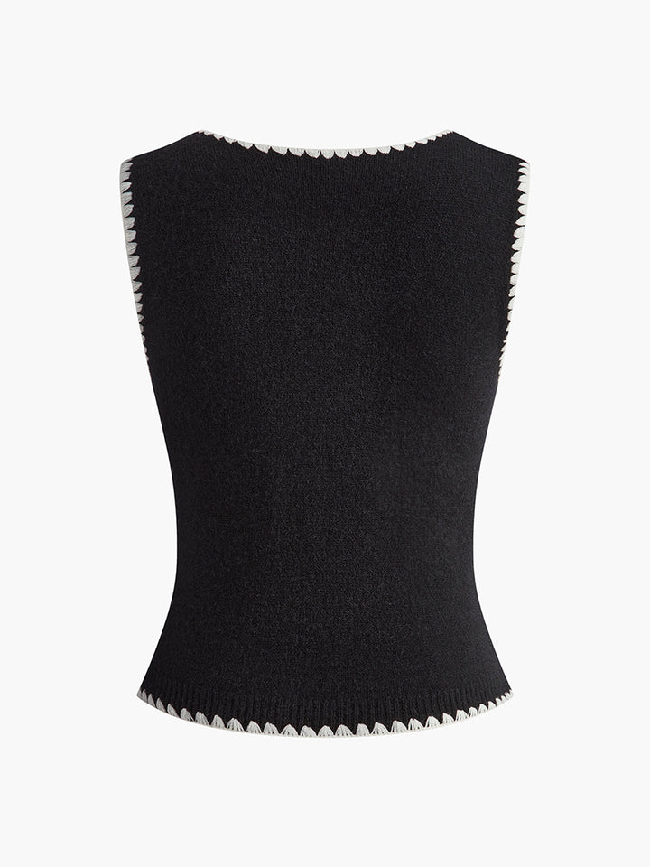 Kontrast Kenarlı Fiyonklu Kazak Yelek