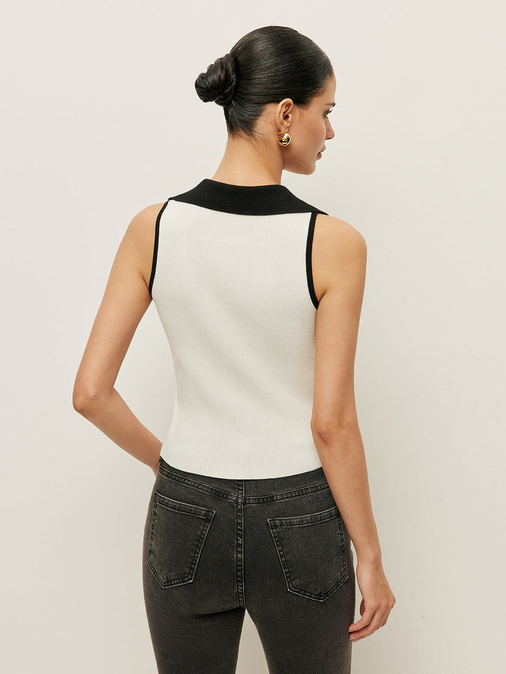 Kontrast Kesim Yakalı Düğmeli Örgü Yelek