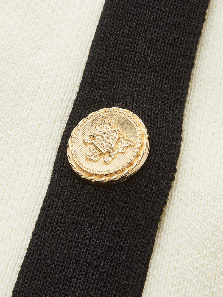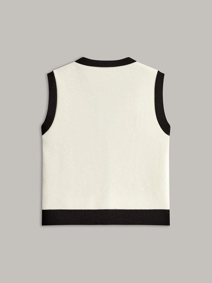 Kontrast Kenarlı Metal Düğmeli Dekor Cepli Kazak Yelek