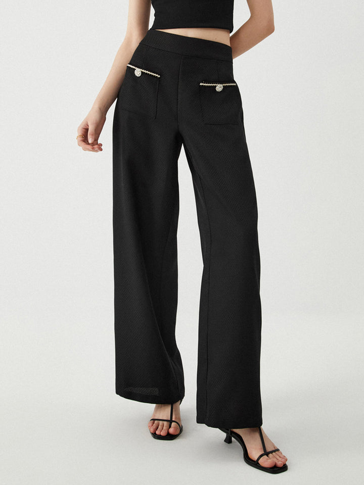 Kontrast Kesim Cepli Geniş Paça Pantolon