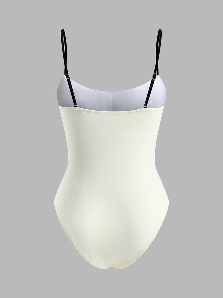 Kontrast Kesim İnce Askılı Tek Parça Mayo