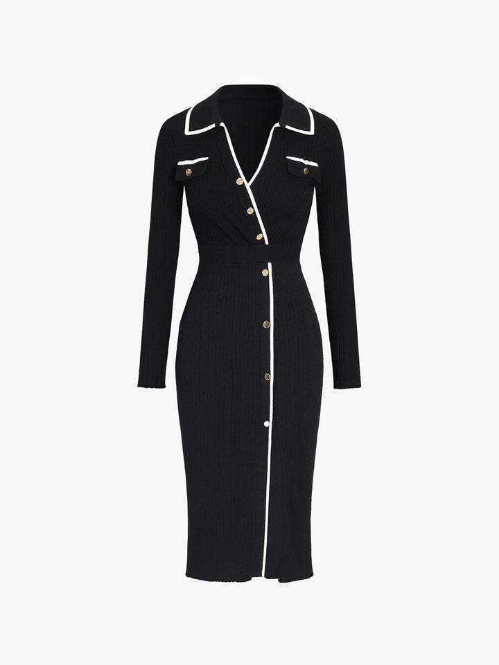 Kontrast Kesimli Midi Örgü Elbise