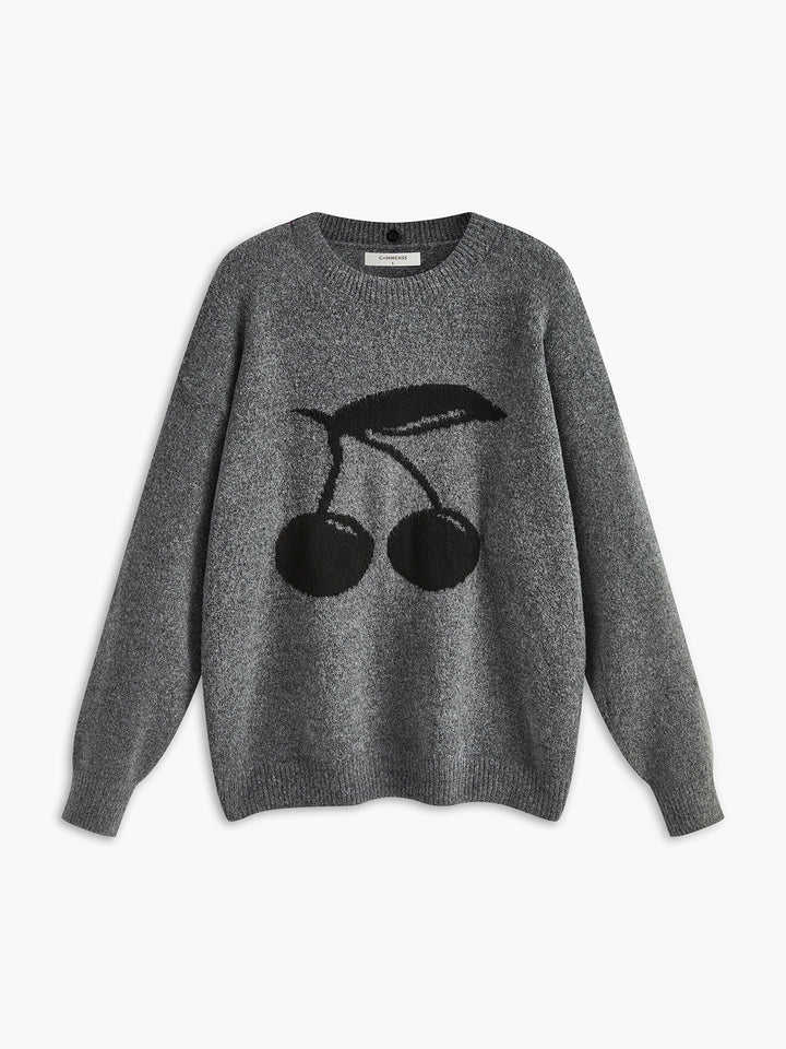 Pamuk Karışımlı Kiraz Baskılı Kazak