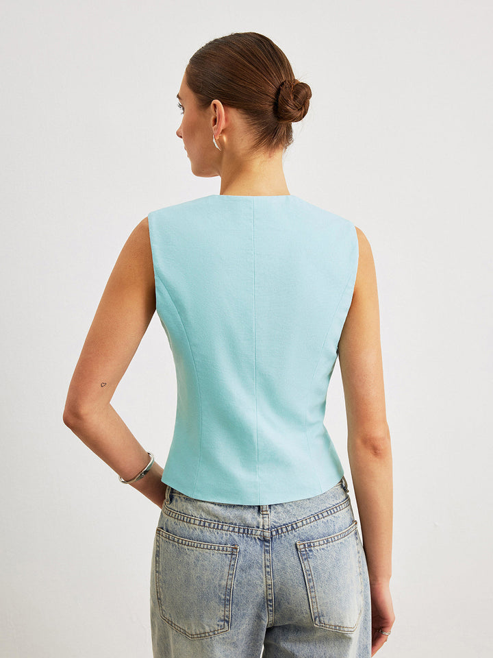 Pamuk Ve Keten Asimetrik Tasarım Kolsuz Yelek