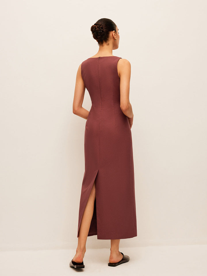 Pamuk Ve Keten Sırt Yırtmaçlı Elbise