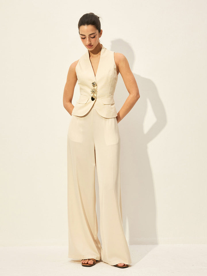 Pamuk Ve Keten Dekor Cepli Yelek