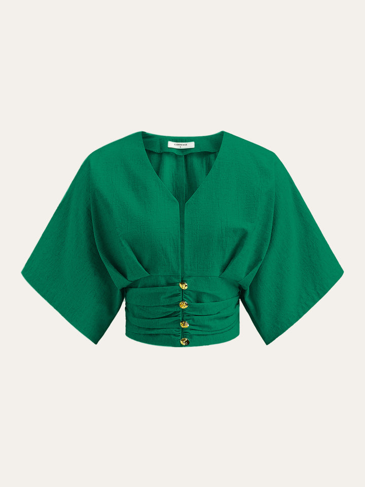Pamuk Ve Keten Kimono Kol Düğmeli Üst