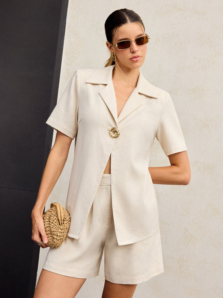 Pamuk Ve Keten Metal Dekor Şort Takımı