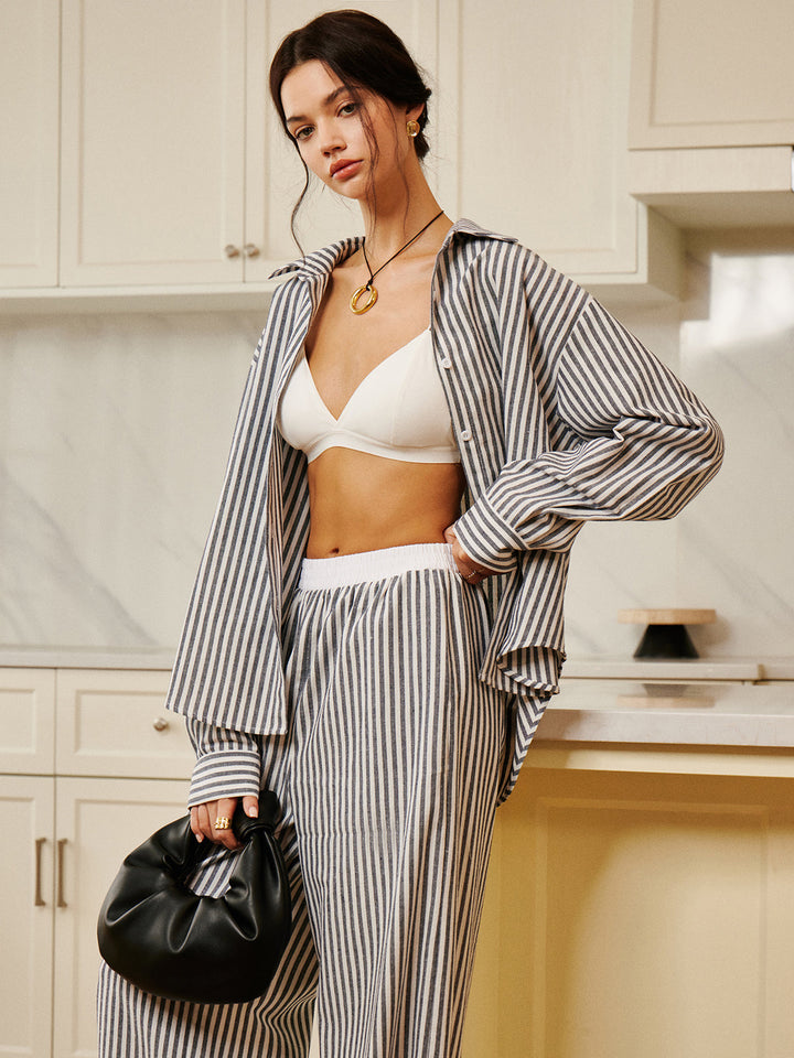 Pamuk Ve Keten Çizgili Bol Gömlek