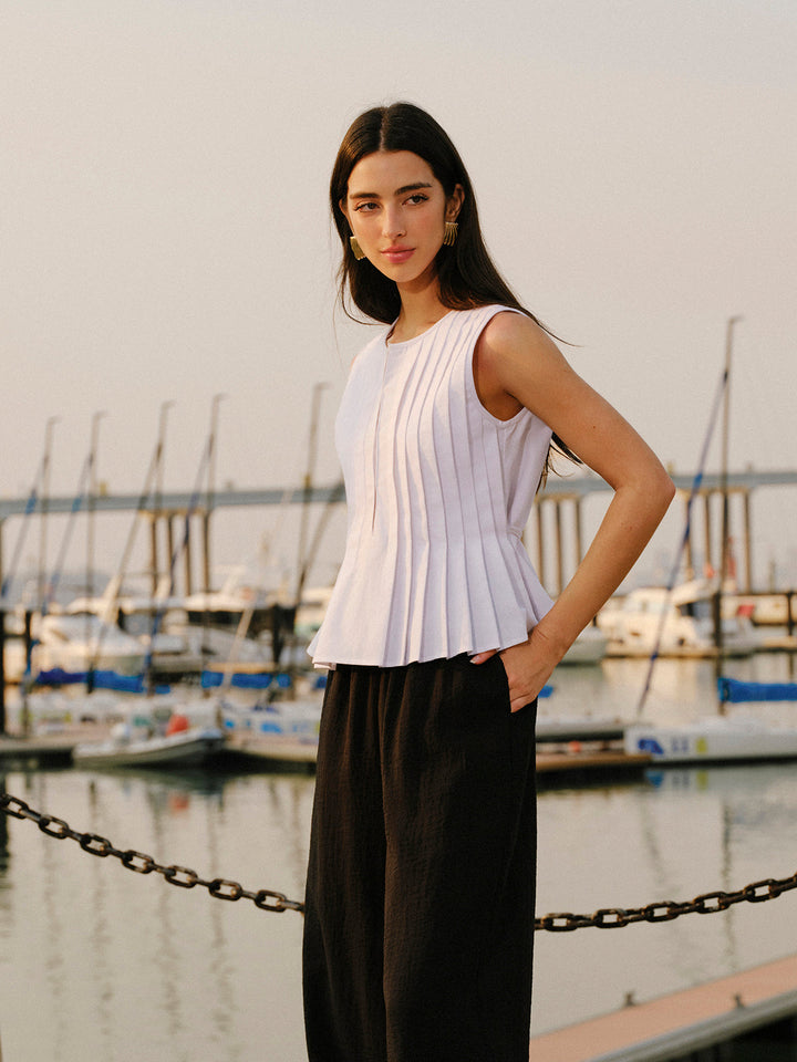 Pamuk Ve Keten Pileli Arkadan Bağlamalı Üst