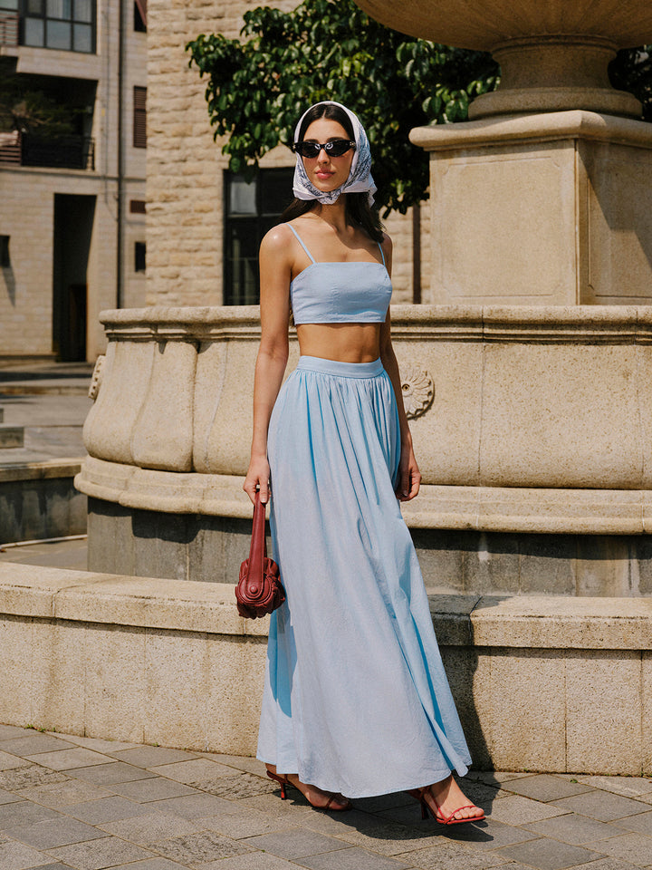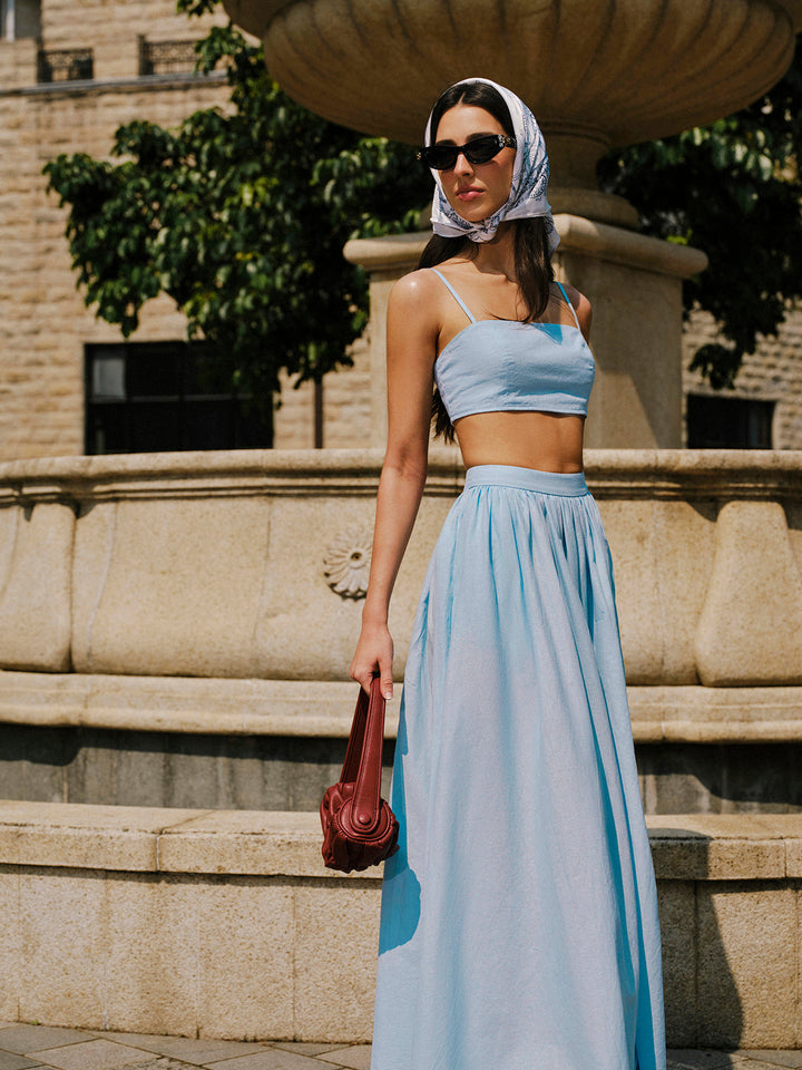 Pamuk Ve Keten Cep Detaylı Etek Takımı
