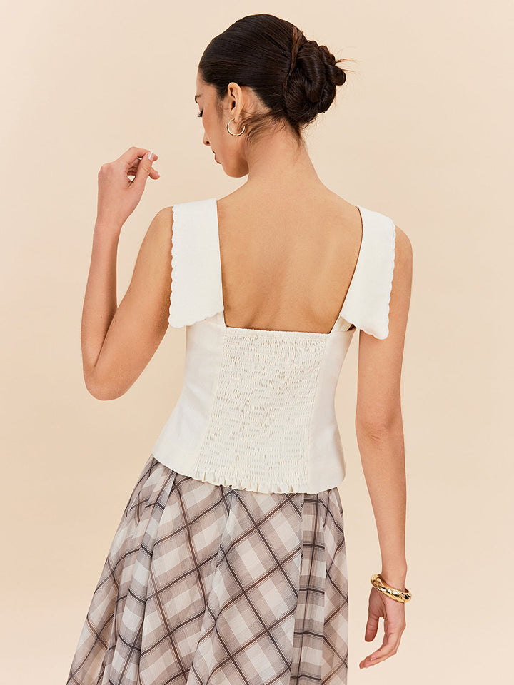 Pamuk Ve Keten Taraklı Yaka Düğmeli Üst