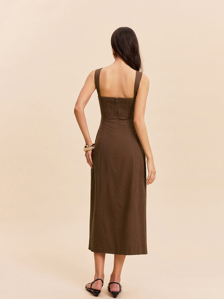 Pamuk Ve Keten Yırtmaçlı Elbise