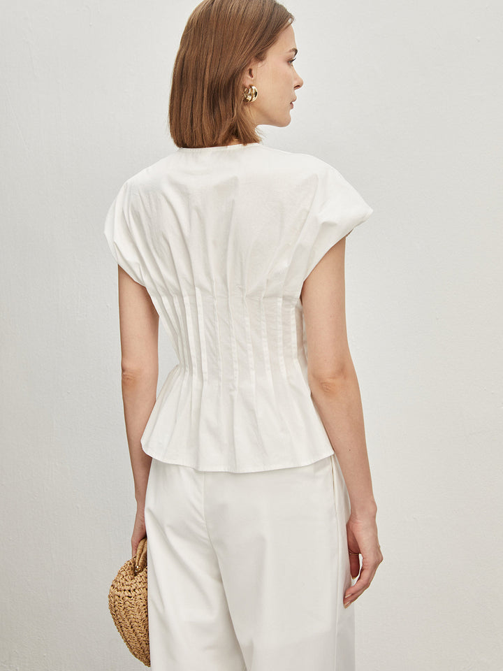 Pamuklu Pileli Düğümlü Bluz