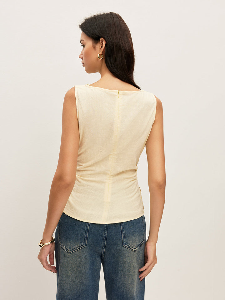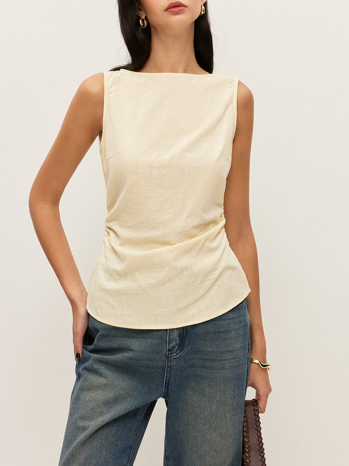 Pamuklu Düz Tekne Yaka Büzgülü Bel Kolsuz Bluz