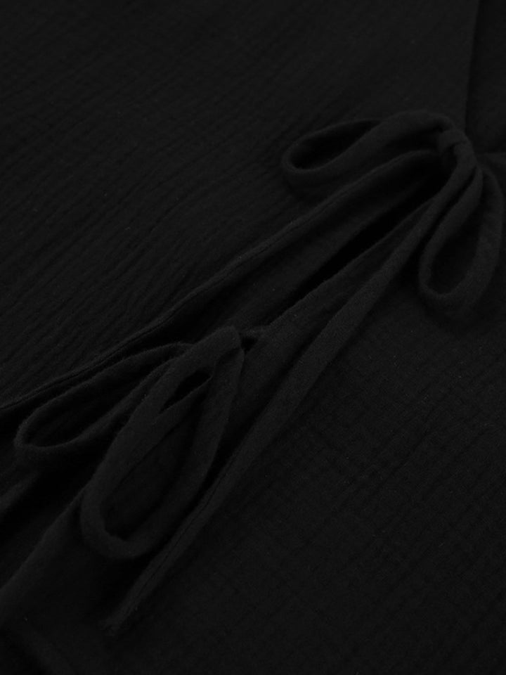 Pamuklu Önden Bağlamalı Uzun Kollu Şort Takımı