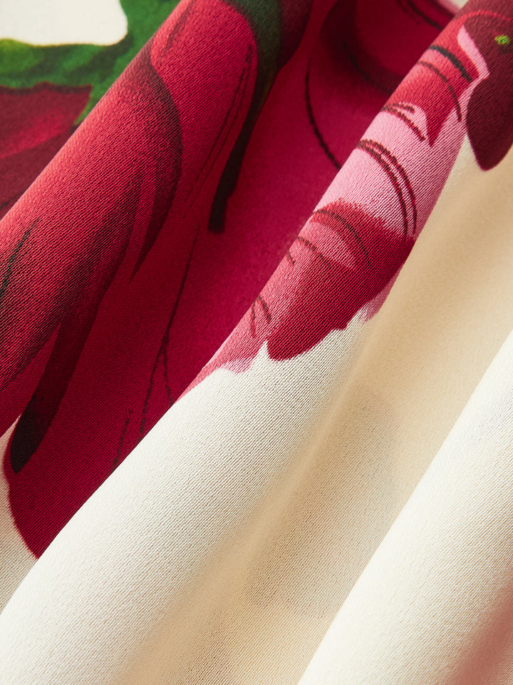 Sırtı Bağlamalı Çiçek Desenli Midi Elbise
