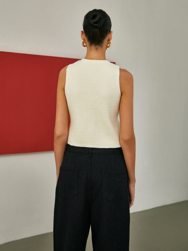 Krem Rengi Düğmeli Ön Hırka